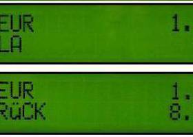 Während des Betriebs benötigen Sie den Gesamtbetrag, den Sie von Ihrem Kunden kassieren sollten. Dieser wird in Zeile 1 des Displays ganz rechts angezeigt. Wenn Sie den Wechselgeldrechner verwenden, erscheint der Wechselgeldbetrag in Zeile 2, ebenfalls ganz rechts. Die restlichen Zeichen bleiben nicht dunkel, sondern enthalten Informationen, die Sie nicht verwirren werden und ebenfalls nützlich sein können.