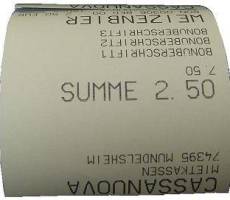 Bei aktiver Summenanzeige wird auf dem ersten Bon der Betrag aufgedruckt, den Ihr Kunde zu bezahlen hat. Der Aufdruck erfolgt in großer Schrift und steht auf dem Kopf, damit er von Ihren Kunden gut gelesen werden kann. Zusätzlich zum Gesamtbetrag wird in kleiner Schrift eine „Rechenhilfe“ aufgedruckt. Zählt man Gesamtbetrag und Rechenhilfe zusammen, ergibt sich immer ein voller Zehnerbetrag.